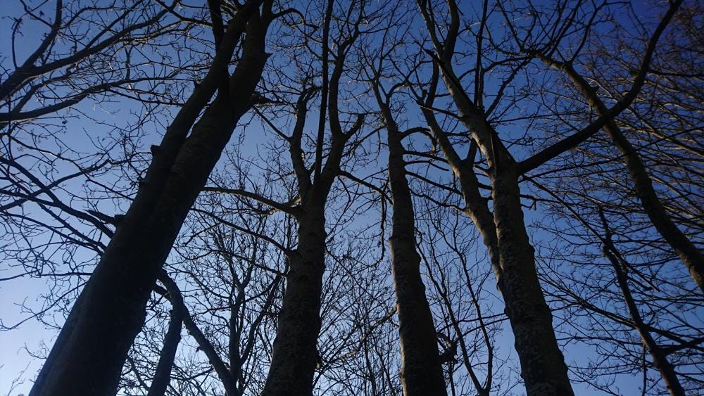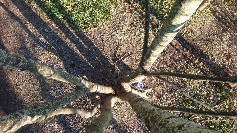 Like Alastair Humphreys, I'm spending more of this year up trees. This particular coppiced ash climb drew the attention of a worrisome dog, highly suspicious of the bag that I left at the roots.