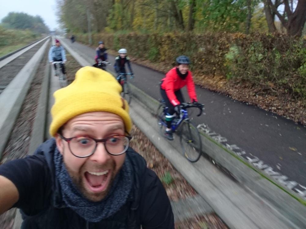 We had a great little crew cycling on the Thighs of Steel ride from London to Cambridge - 60km of misty canalside paths, rolling countryside roads and, erm, these surprisingly nervy bus tracks. Classic Thighs.