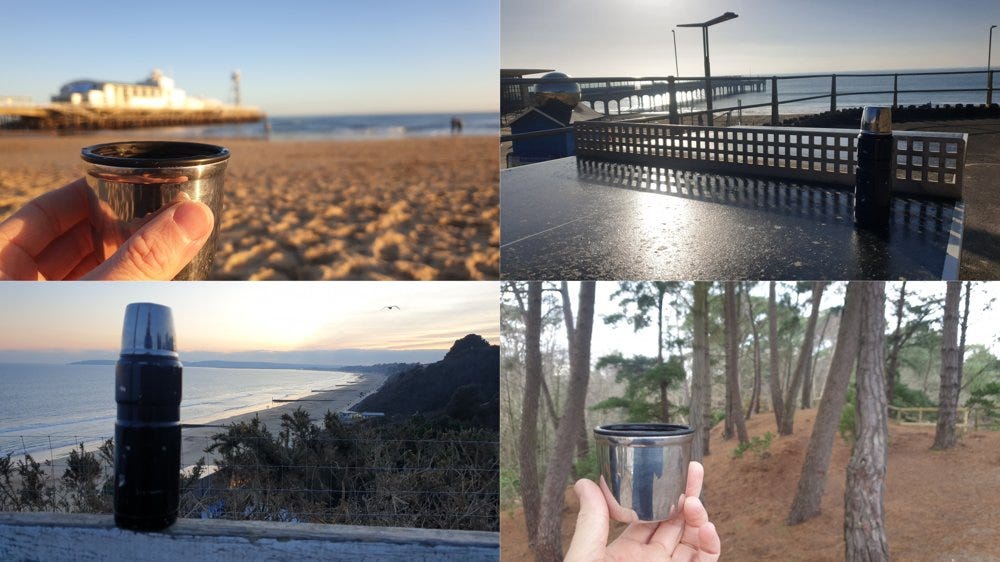 But that won’t stop us, no. Doorstep, garden, beach and wood await your gentle brew.